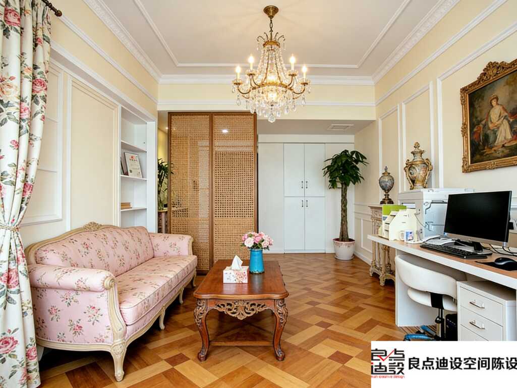 蕾丝窗帘透光又柔美,和碎花沙发的布艺材质悄悄呼应,把法式的“精致感”抠到了细节。雕花家具的实木肌理,又和布艺、水晶的柔软形成了巧妙对比。