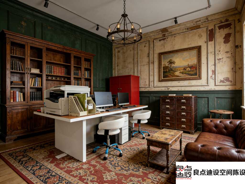 办公家具这块,是“稳重”和“轻盈”的混搭。大班台是厚实的实木,边角有点小雕花,点到为止。配的椅子可讲究了:一把是白色皮质的现代人体工学椅,坐一天腰不酸;另一把是实木圈椅,坐垫上绣着精致的纹样。一现代一传统,实用和格调全都有,接待客户的时候面子十足。