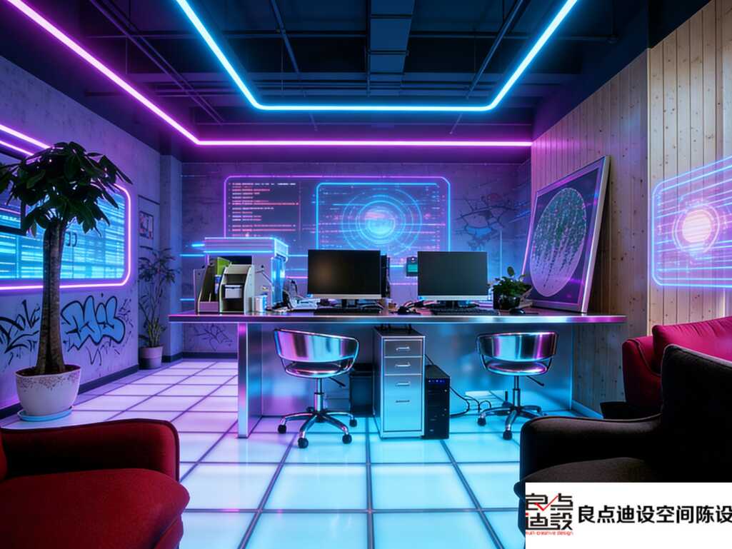 #办公室软装 #赛博朋克装修 #办公空间设计 #灯光设计 #复古混搭 #办公室装修灵感 #软装搭配 #工业风办公室 #未来感设计 #办公家具