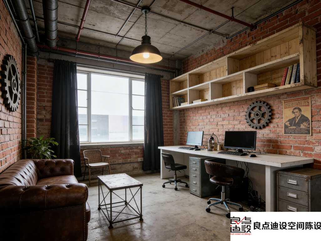 灯光真的选得好,不是那种煞白的冷光,整体偏暖,工作到深夜也不觉得压抑。这种“旧物改造”思路,把工业风的粗犷和复古的精致拿捏得死死的,谁看了不夸一句“会装”!