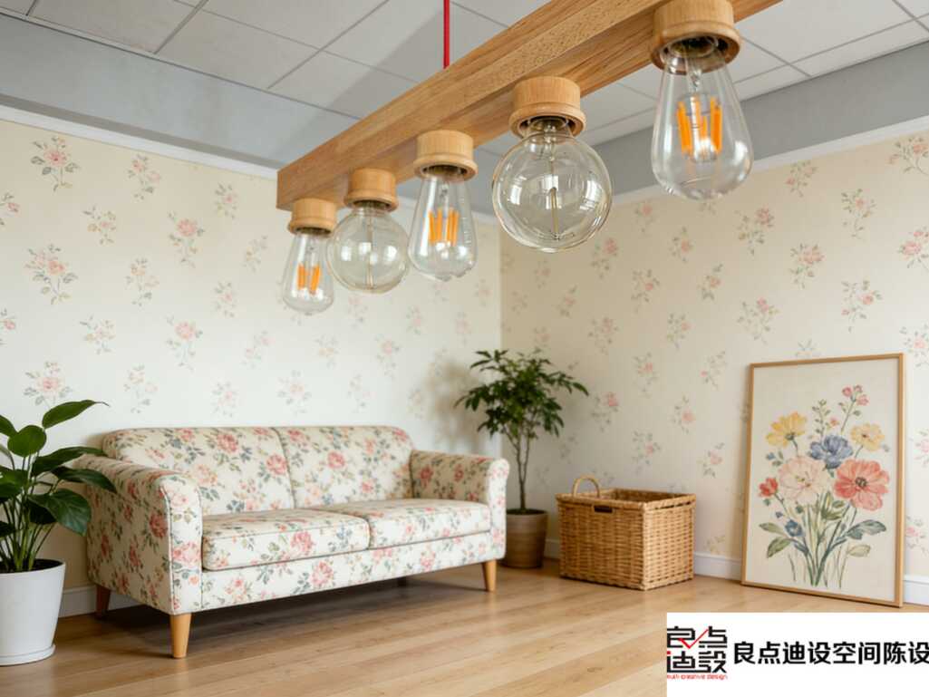 元素呼应: 碎花沙发、格纹窗帘、复古挂画,全都在讲同一个“田园故事”。