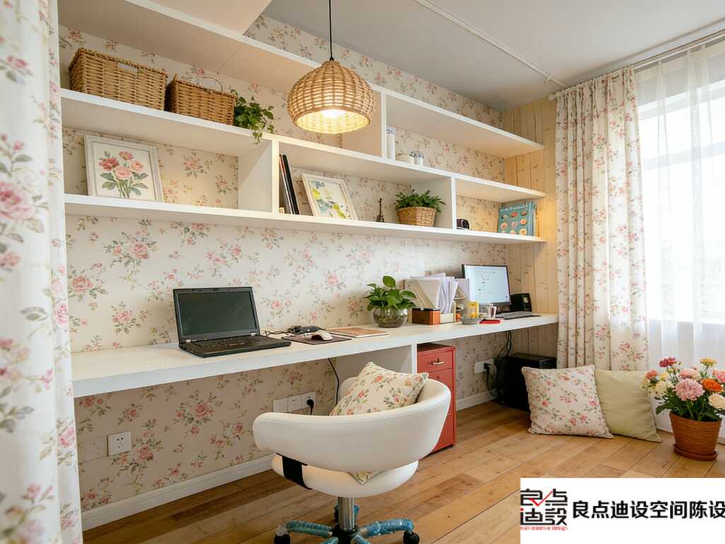 奶白色的办公桌清爽干净,搭配设计感单椅。显示器后面藏一幅仿真椰树画,抬头就是“海景”。茶几上摆一个陶艺果盘,随意插几支鲜切枝,随手一拍都是ins风。细节处的松弛感,***戳人。