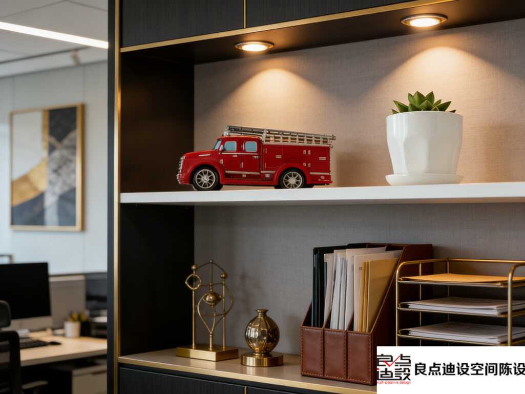 上层,用了辆亮红色的复古消防车模型🚒。绝了!一下子就破开了深色基调的沉闷,活力瞬间迸发。旁边配一盆油油绿绿的小多肉,这一动一静,层次感拿捏了。顶上射灯一打,这个角落立马成了视觉焦点,进门***眼的高级感就有了。