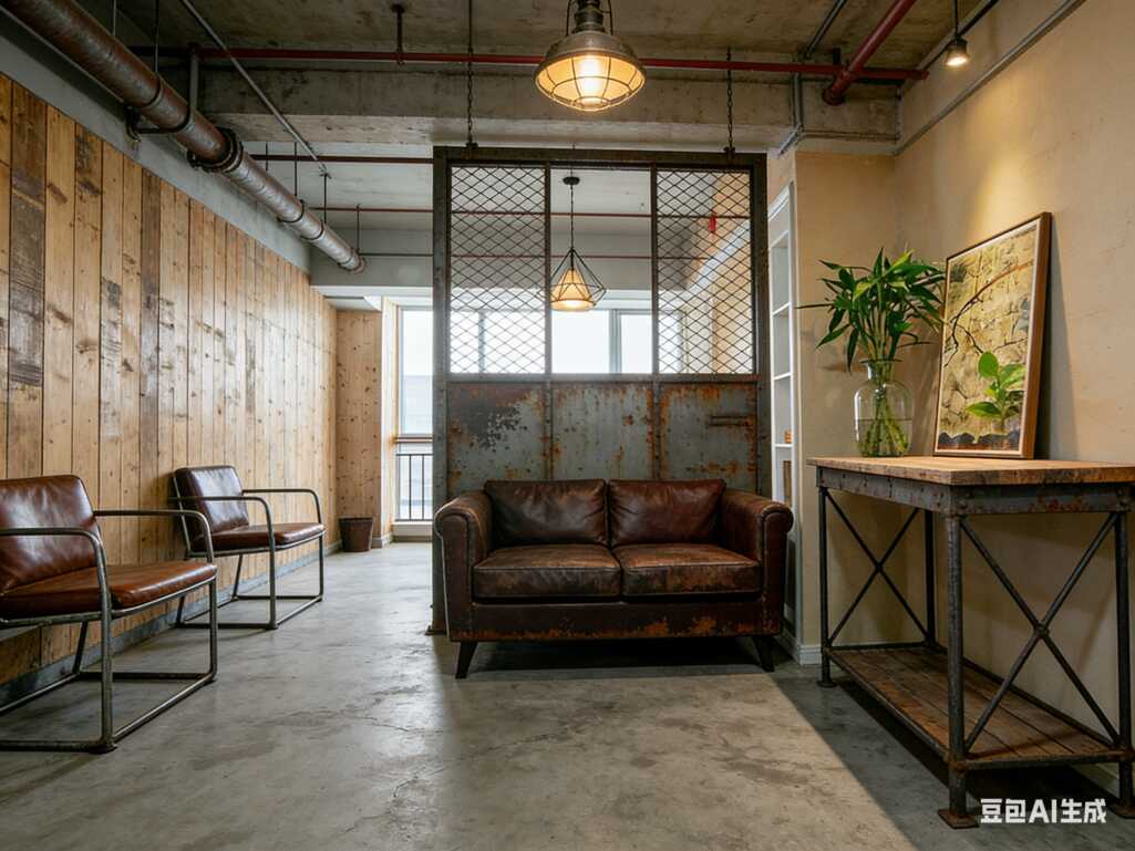 谁还在搞白墙+工位?这套工业风办公室软装设计,复古沙发配水泥地,高级感我直接抄!