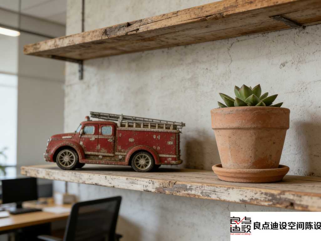 办公空间の“反差萌”拿捏!水泥墙×木架×小红车,这波软装设计我先抄了!