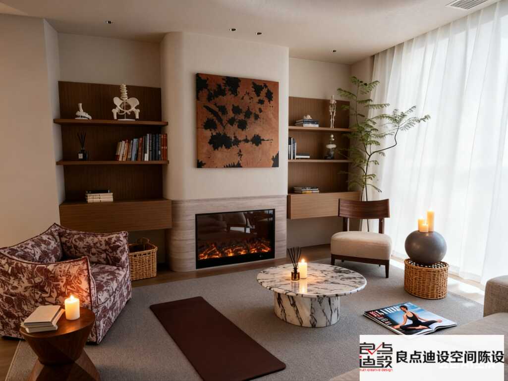 宝子们!刷到「良点迪设」新作的普拉提休息区实拍图,直接瞳孔地震——焦糖色沙发配藤编坐墩,弧形落地镜斜靠墙角,大理石圆桌上那盏褶皱纸灯温柔得像会呼吸!这哪是普拉提馆啊,分明是长在审美点上的侘寂风艺术空间!