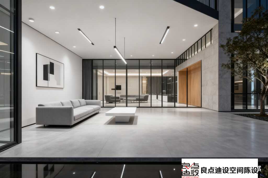 装饰画/摆件:少而精! 选 抽象几何线条画 或 极简风小雕塑,别堆砌!前台放个有设计感的公司LOGO装置,逼格立显。