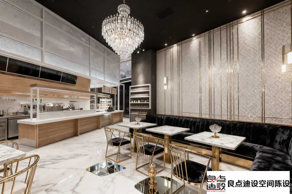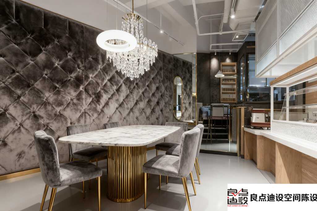 爆款轻奢风餐厅软装设计!水晶灯+黑金配直接封神!_良点迪设北京软装设计公司