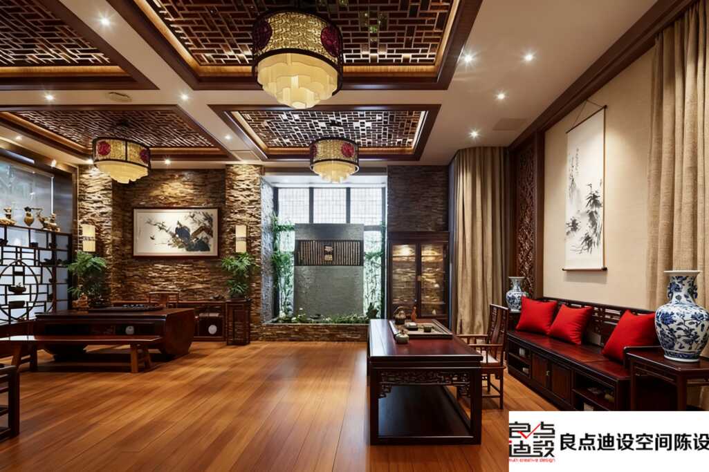灯光与氛围***是氛围感的“魔术手”。你看,没有一盏主灯是直射的!门口悬着云纹纸灯笼,光线朦胧柔和;室内主要靠壁灯、嵌入式灯带和桌面重点照明。暖黄色的光晕打在金色墙面、圆形装饰画和茶具上,光影层次丰富,瞬间烘托出温馨、静谧的私密感。在这种光线下,人都自带柔光滤镜。