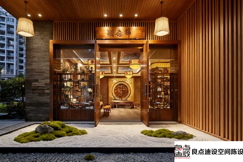嘿,小伙伴们!今天带你们云探店一家让我瞬间心动的茶楼——锦意顺。从外观说起,那两扇敞开的木质大门,配上“锦意顺”的复古牌匾,是不是已经脑补出古装剧里的静谧场景?门前铺着白色砂石,点缀着苔藓和小石块,禅意感拉满,但这只是开胃菜哦。真正让我上头的,是它室内那些绝绝子的软装设计,简直把中式美学玩出了新高度!