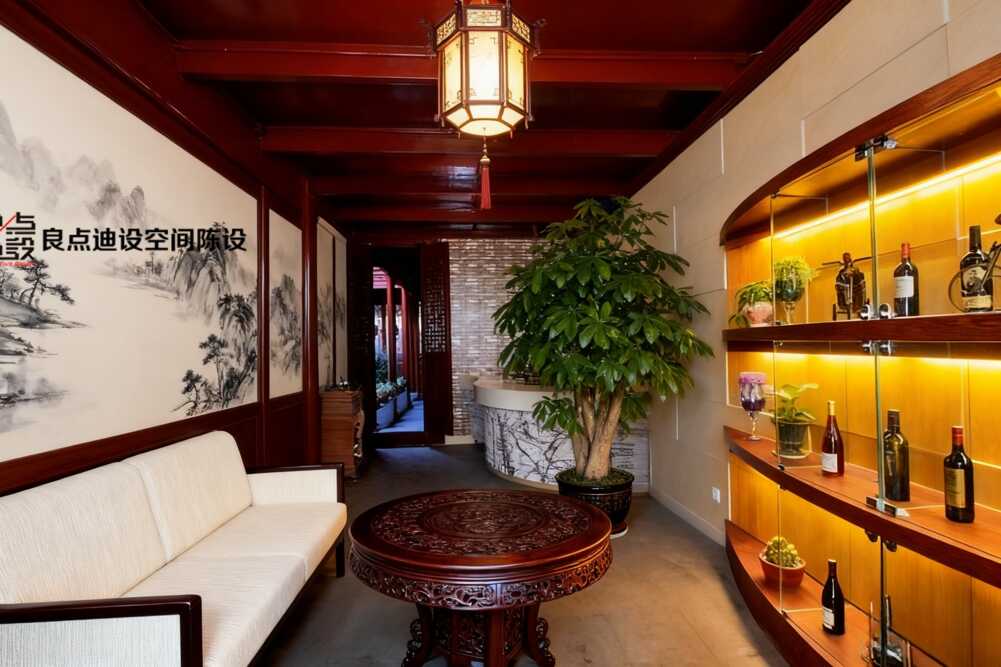 要说***聪明的设计?就是把文化元素变成视觉焦点。书法墙成了天然拍照背景,绿植平衡深色调,所有细节都在诉说东方美学。这样的茶楼,想不火都难!