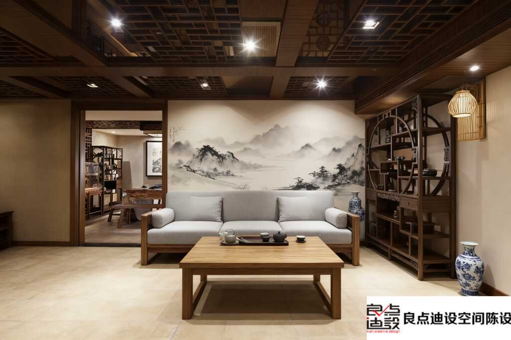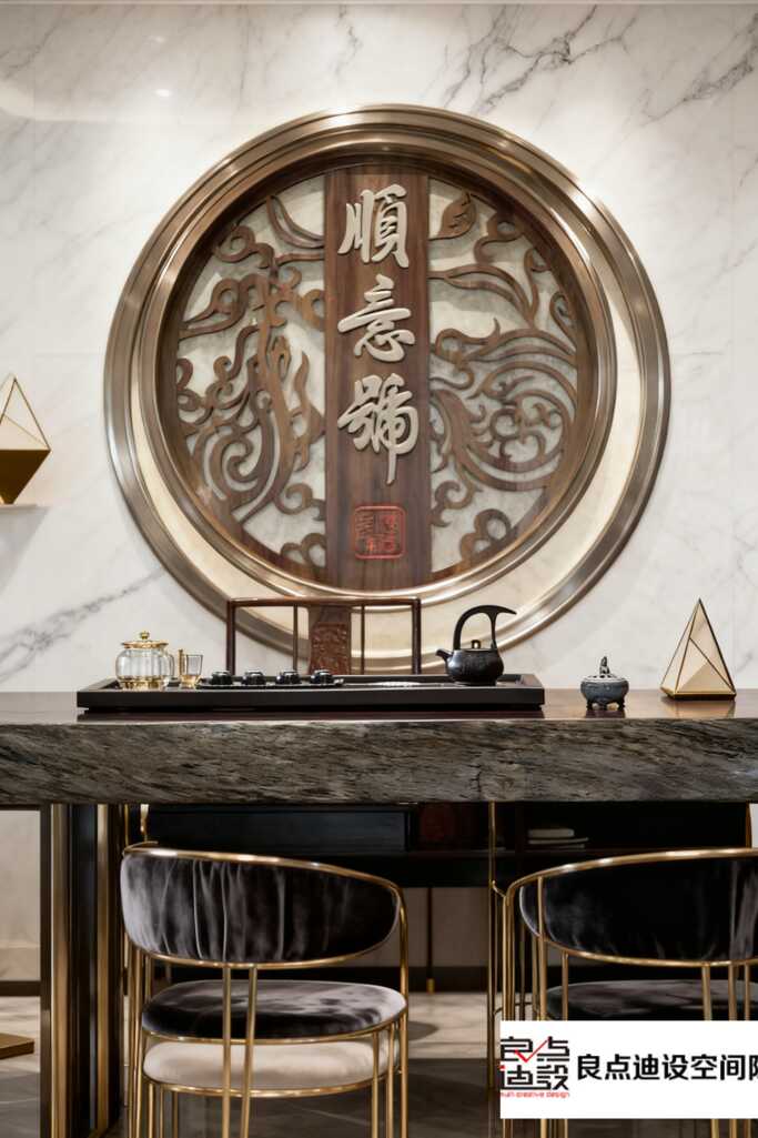 爆改100平|这家新中式茶馆软装设计用“黑金禅意”拿捏了年轻人!