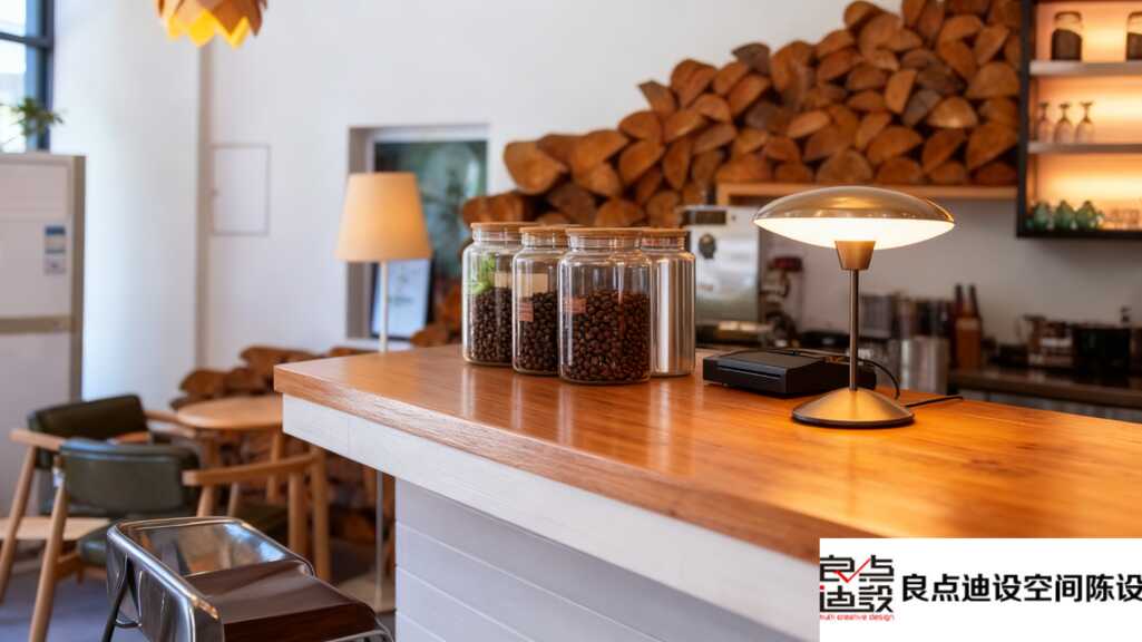 目光移到吧台,又是另一种感觉。白色与木色的经典搭配,看起来干净、清爽、专业。操作台井然有序,而背景墙上那幅精致的咖啡拉花装饰画,堪称点睛之笔!它悄悄告诉每一位顾客:我们不仅懂设计,更懂咖啡。这里没有冗余的装饰,所有设计都服务于“做一杯好咖啡”这个核心功能,但通过一幅画,又把艺术感和专业度轻轻托起。