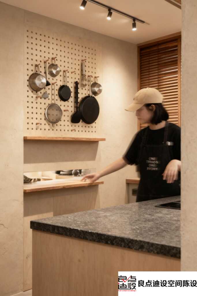 走到中岛台附近,细节控简直狂喜!灰色台面跟木色搭配得恰到好处,沉稳又不失层次感,实用性也拉满。***戳我的是那个黑色水龙头,小小一个点缀,瞬间让空间多了几分精致感,还不显突兀。软装嘛,就是这样——往往一个小元素就能点亮全场,这家店做得超到位。