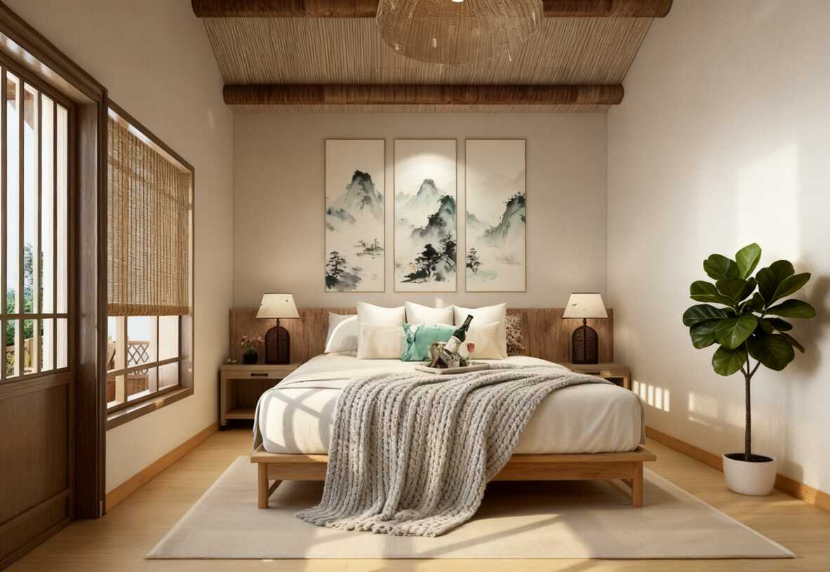 软装搞点纸灯、石质蒲团,低成本 get 日式禅意感;