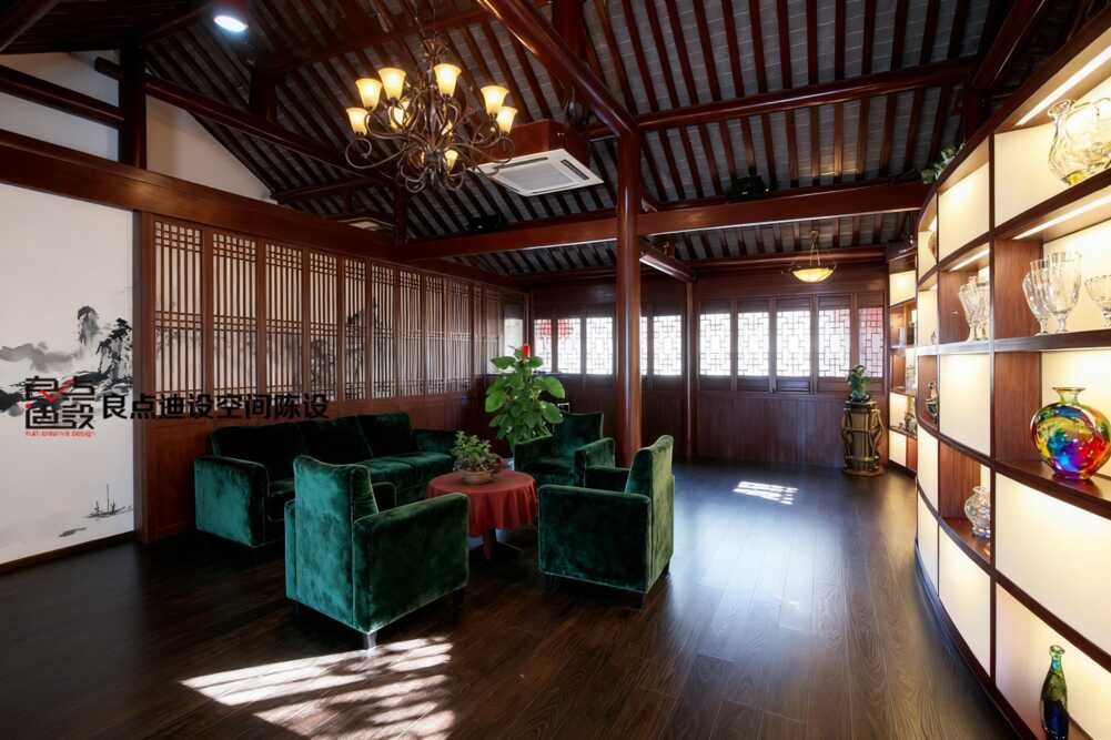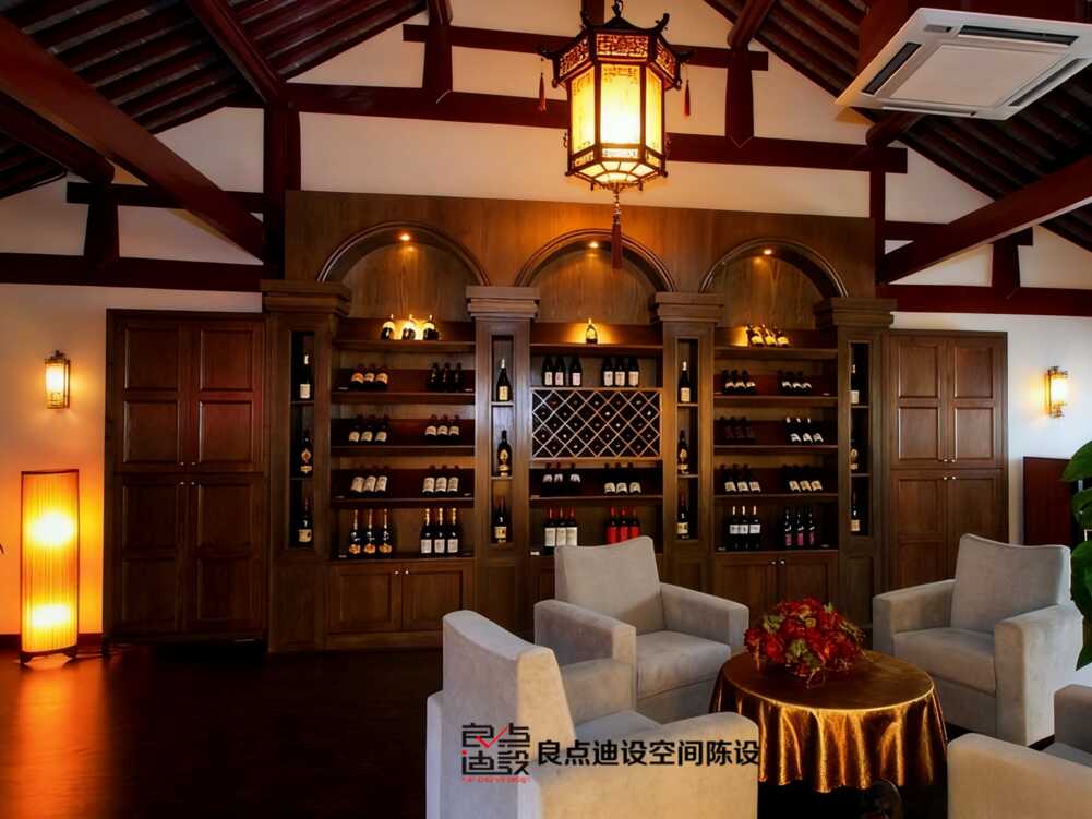 实木酒柜配皮沙发?这套茶馆软装设计组合拳直接封神!