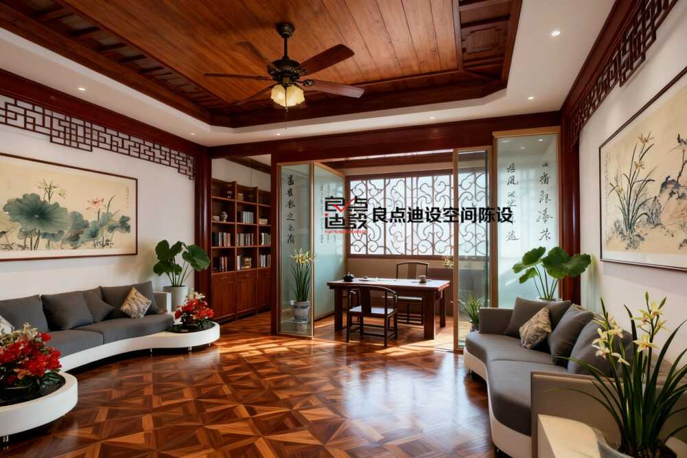 木质天花板+复古吊扇,这间茶室软装设计把中式风拿捏死了!
