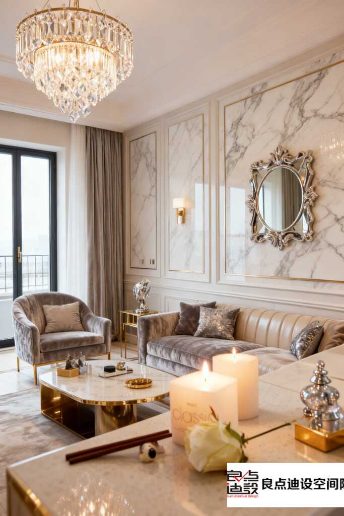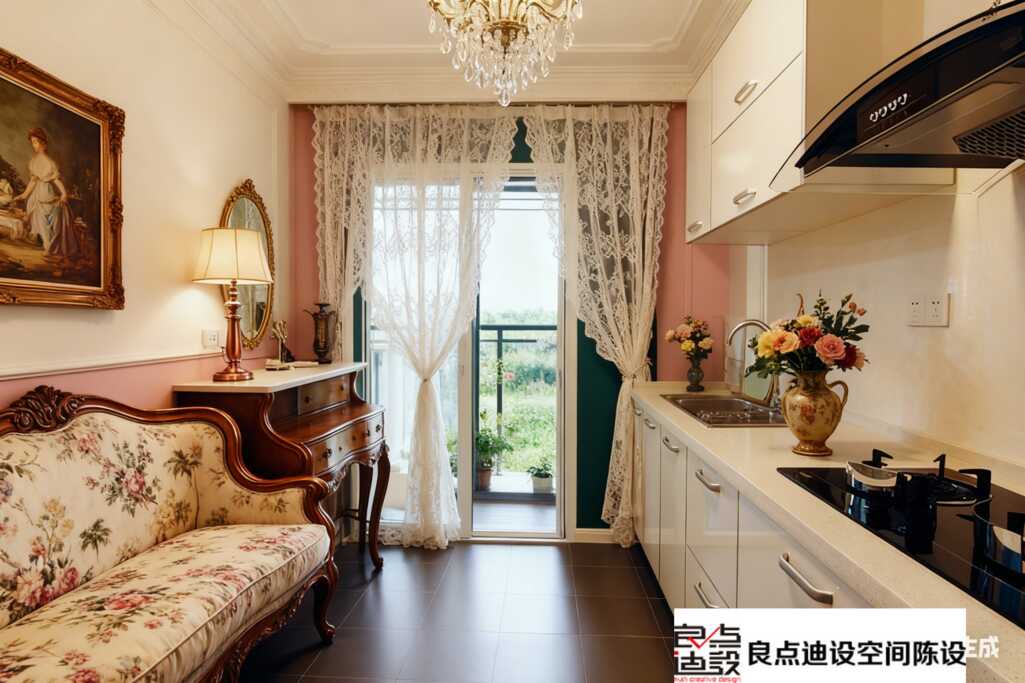 整体软装搭配,色彩上以浅木、粉、白为主,温柔不失个性;材质上混合木质、布艺、水晶,层次丰富。每一件单品都不是孤立的,而是相互呼应——比如沙发花纹与画作风格搭调,窗帘的柔美平衡了橱柜的硬朗。软装设计,说白了就是通过这些元素来讲究协调与对比,这套案例做得相当到位。