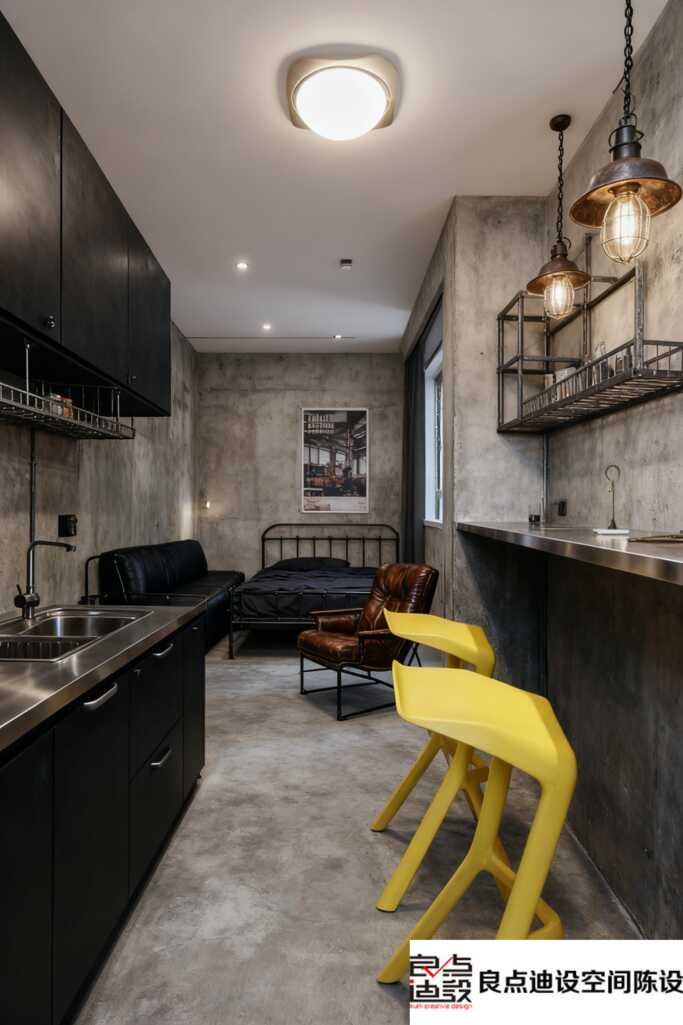 抬头看,那盏复古金属吊灯***是灵魂!打开暖黄色灯光,光线洒在水泥墙上,整个屋子立马笼罩在一种慵懒又高级的氛围里。墙面刻意保留的水泥原始质感,没做任何修饰,这种“未完成感”正是工业风的精髓,粗犷中带着时间沉淀的味道。