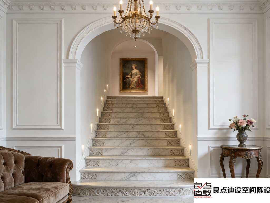 说实话,现在美容院遍地都是,但能把软装做到这么***的真不多见。这家店一进门,那个大理石楼梯就直接镇住场子了!纯白的大理石台阶,配上精致的雕花细节,每一步都像踩在云端,优雅感扑面而来。楼梯旁边墙上挂了一幅古典油画,金色画框闪着细腻的光,瞬间把整个空间的格调拉满——这种小细节,就是软装设计的灵魂啊。