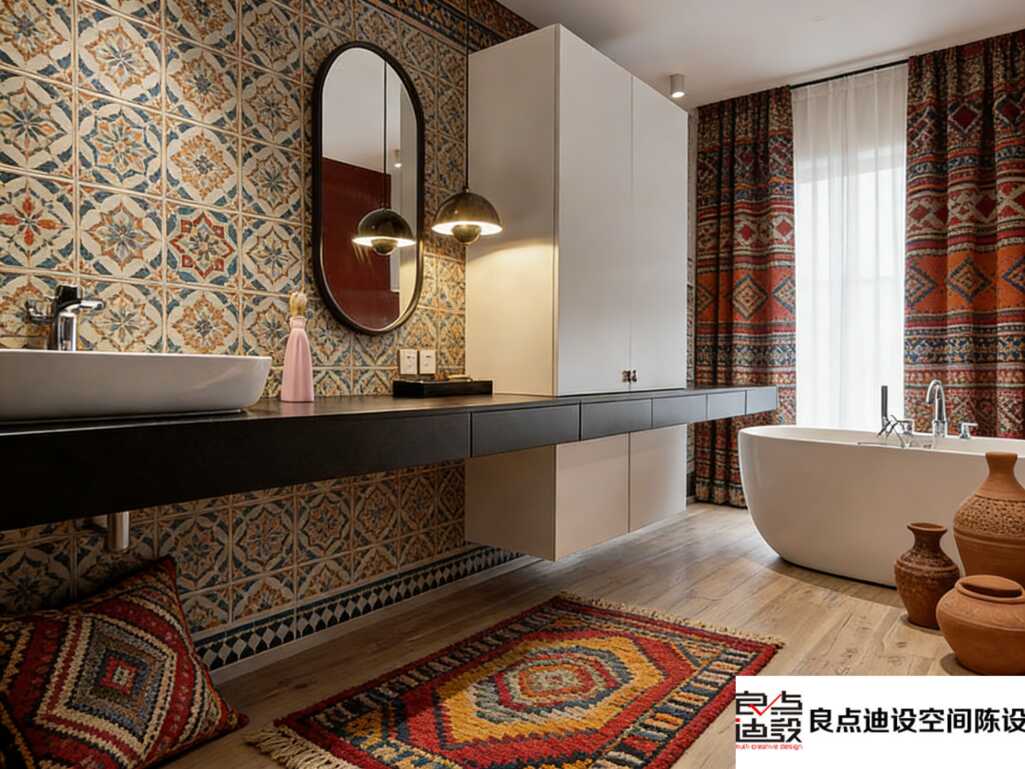 一进门,视觉C位不是冰冷的前台,而是两把藤编休闲椅,配上色彩浓烈的民族风绣花坐垫。这个组合拳太妙了!藤编材质自带呼吸感与休闲度假风,瞬间卸下心防;跳跃的坐垫色彩则打破了可能存在的沉闷,注入活力。旁边点缀着木质雕花小摆件,细节控狂喜,这种手作温度是流水线产品没法比的。