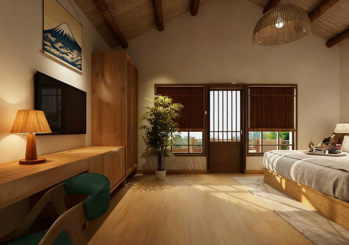***戳我的是墙上那幅富士山挂画,配色复古又吸睛,一下子就把日式风情钉死了。还有那扇格栅门,拉开就是户外景色,关上时光影在木质纹理上跳舞,拍照发朋友圈,朋友都问是不是住进了日剧里的温泉旅馆。