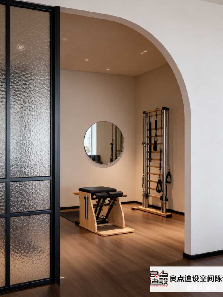 弧形门洞+圆形镜!这间普拉提室温柔到心巴上了🌙