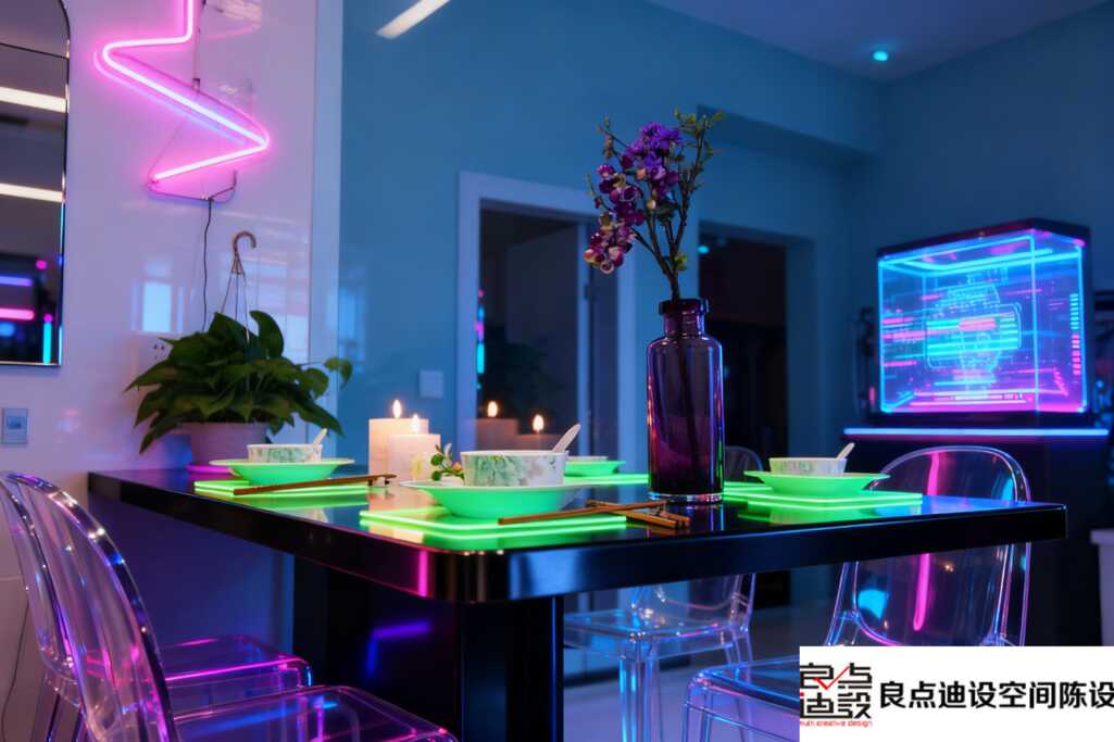 爆款赛博风餐厅软装设计!一键解锁未来感家居,太炫了!